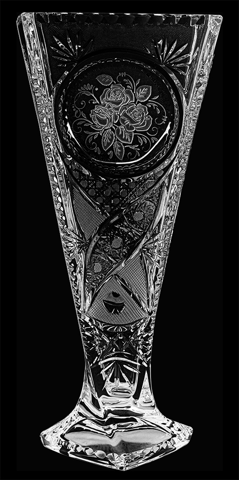 These items are made individually, there are no two perfectly identical pieces. Although they style are always similar, our items are fits together, even with different functionality, but the pattern is always changed a bit. The sixteen edged baccarat star, the eight edged joint star, the round shaped depression, the palm, the sharp crosswise cuts and the matte saturation pattern always can be found. My decorations are rich, covers the whole surface, I am not saving on the working hours, and in a certain level, every my items can be engraved. Sometimes I let a round shaped empty place in the middle, which allows me to engrave more than usual, nevertheless graphical object or coat of arms.